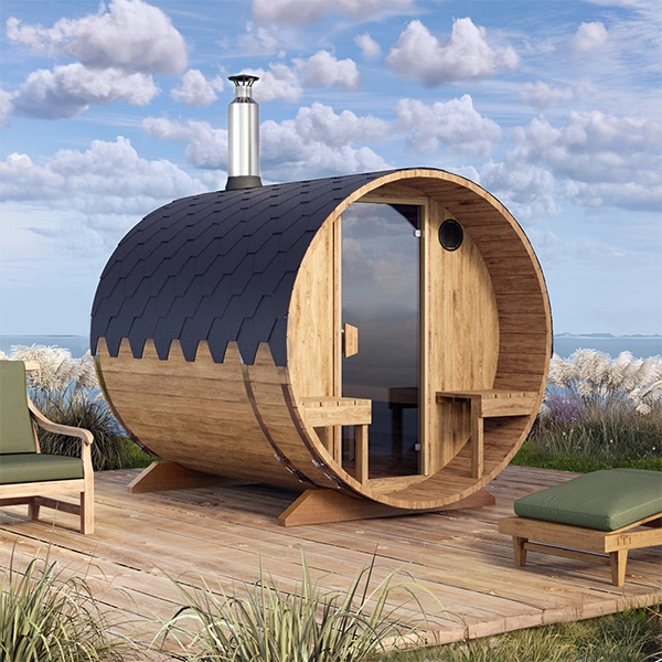 2.4m Outdoor Barrel Sauna with Outside Seats (S2V) for 4 People