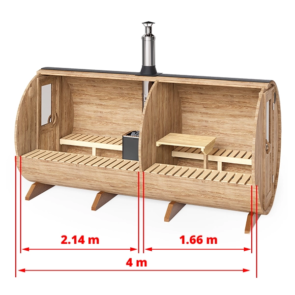 4m Two-Room Outdoor Sauna (S4D) for 4-6 Persons