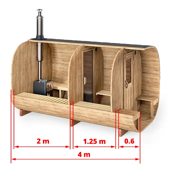 4m Cube Barrel Sauna with Dressing Room & Outside Seats (SQR4PV) for 4 People